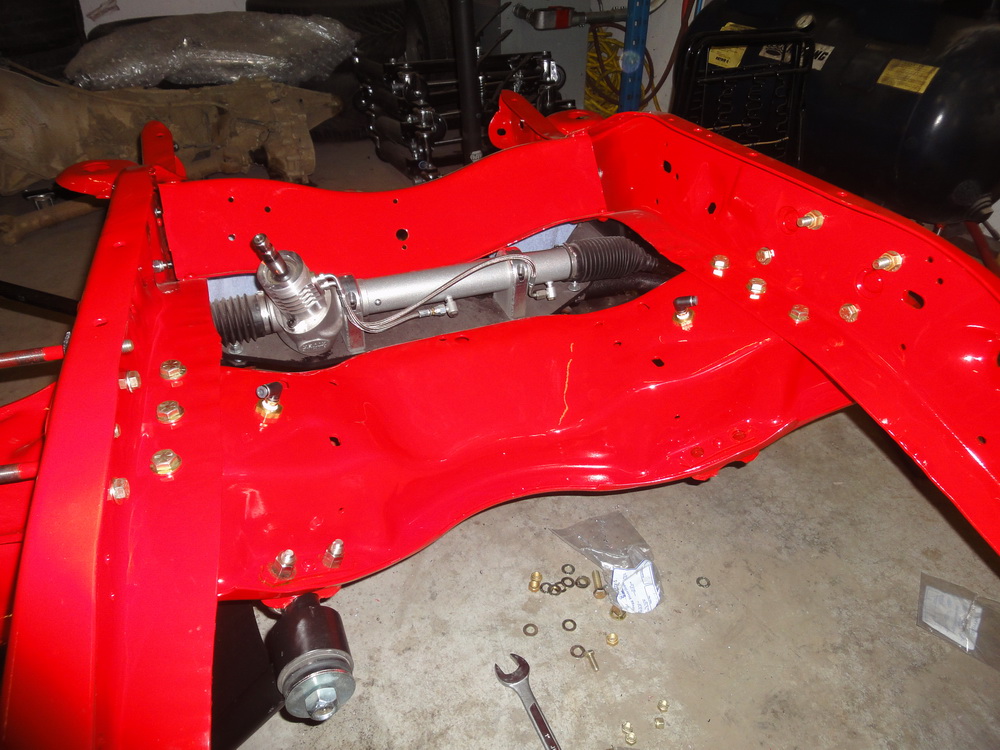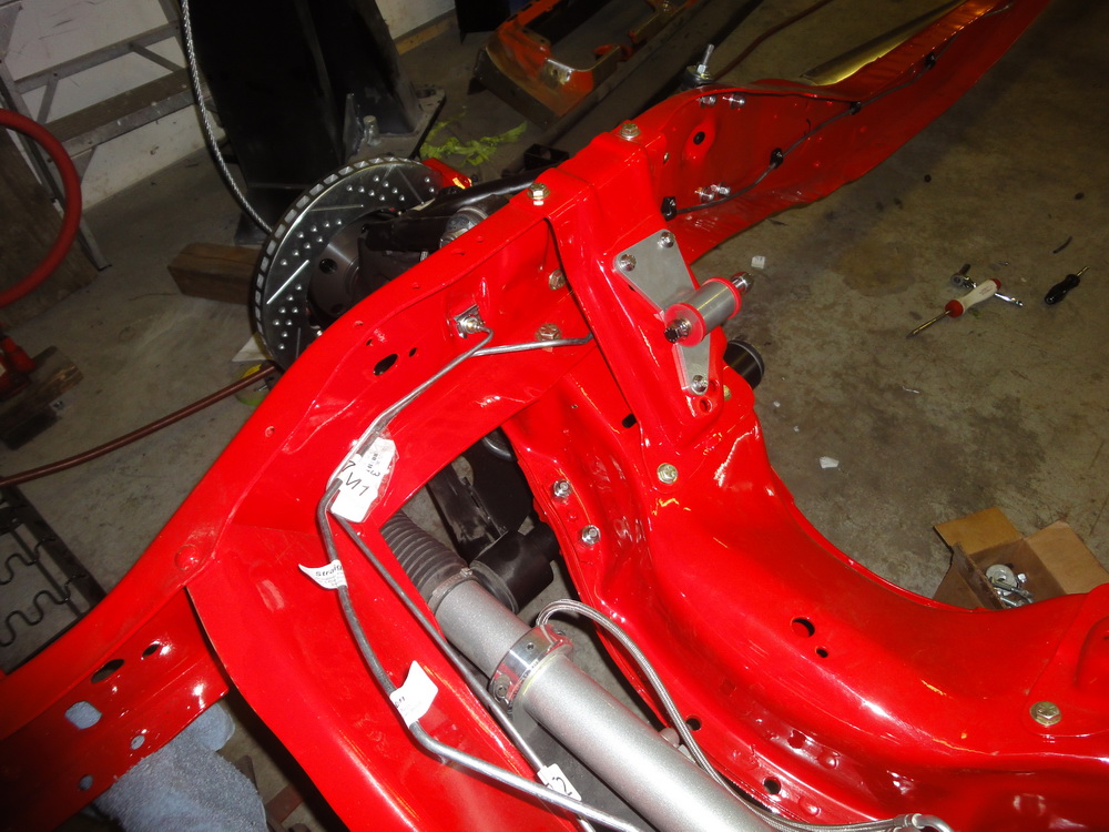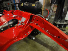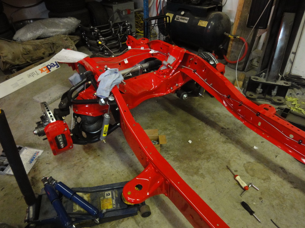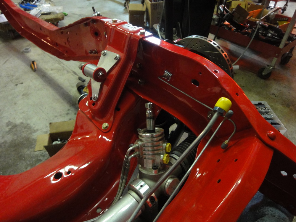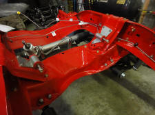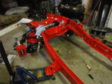 We then got our frame back from Langley U-Blast and took it over to Hi-Pro Coatings to be powdercoated in Cardinal Red to match our Baer brake calipers. They took the main crossmember off the main frame so that it could be cleaned and coated better.